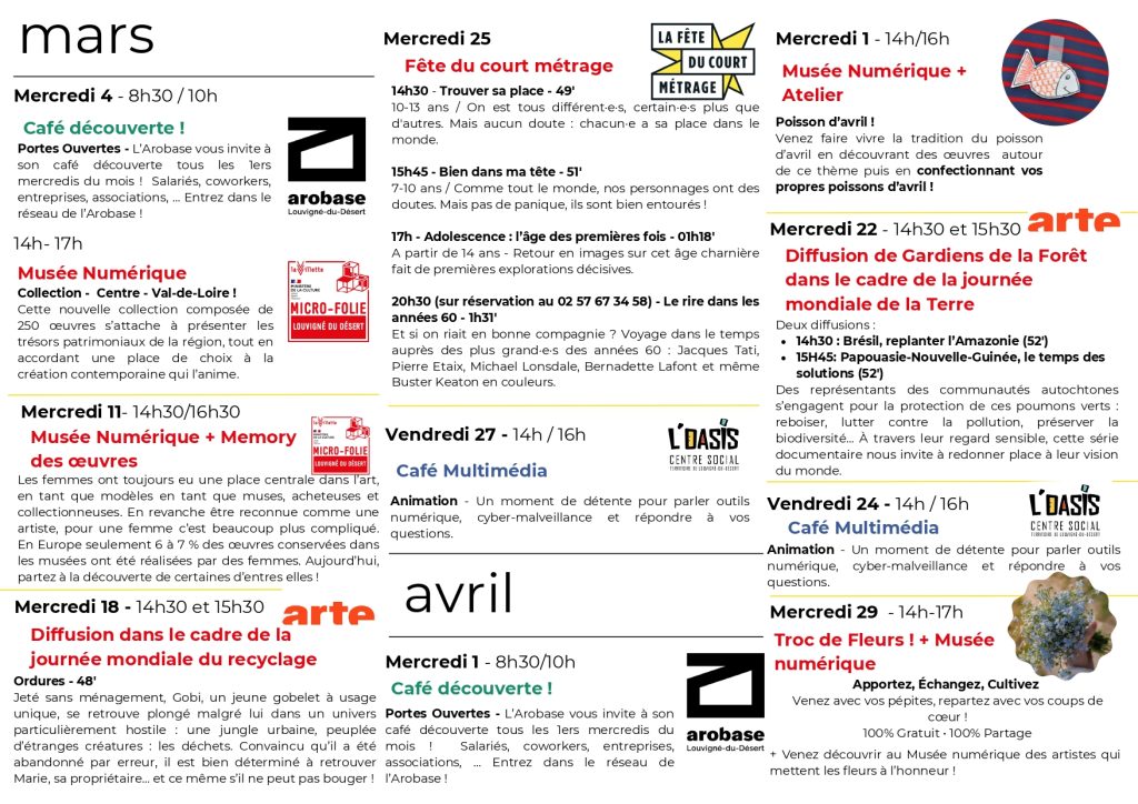 Arobase de Louvigné : programme mars – avril