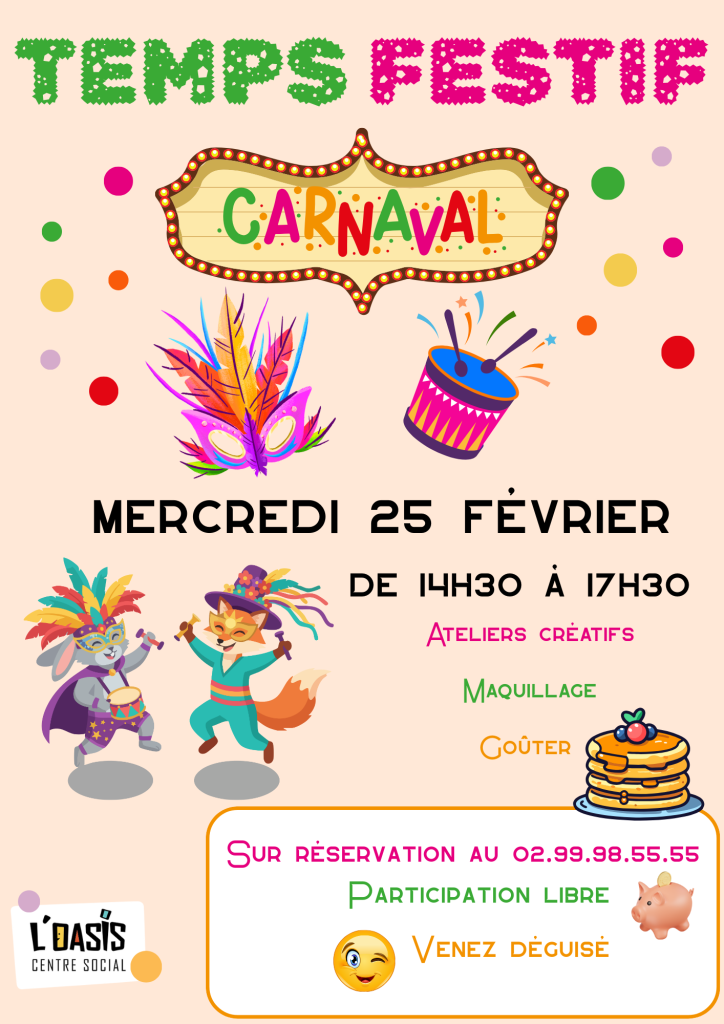 Centre social L’Oasis : carnaval mercredi 25 février de 14h30 à 17h30