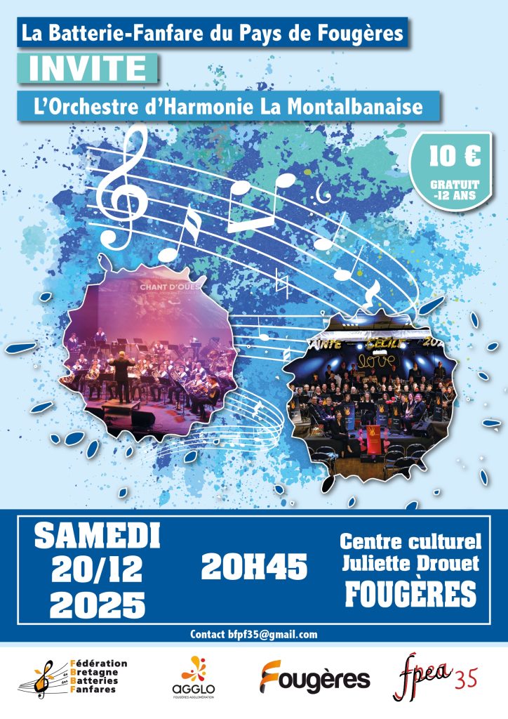 Concert de la batterie-fanfare du Pays de Fougères : samedi 20 décembre à 20h45 au centre culturel Juliette Drouet