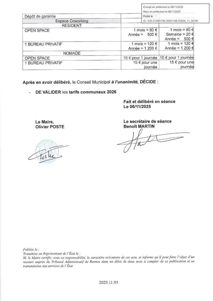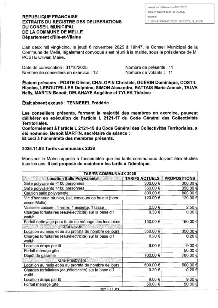 Tarifs municipaux 2026